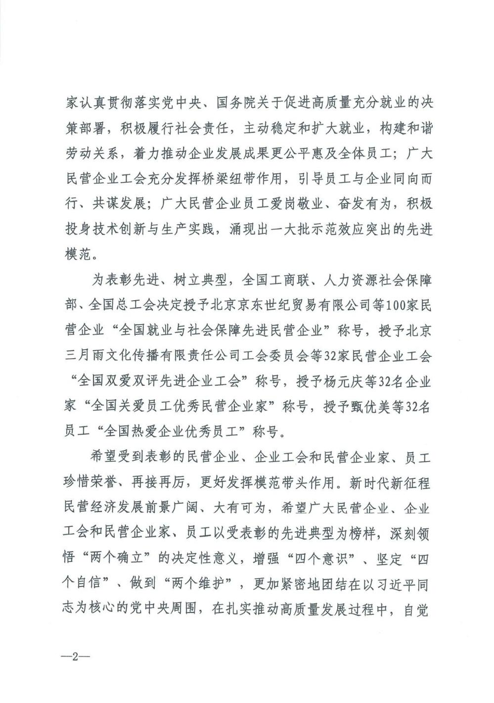 近日,由中华全国工商业联合会、人力资源和社会保障部、中华全国总工会联合印发的《关于表彰全国就业与社会保障先进民营企业等先进典型的决定》(全联发〔2025〕21 号)正式公布,浙江云中马股份有限公司凭借在稳定就业、完善社保体系、构建和谐劳动关系等方面的突出贡献,荣获 “全国就业与社会保障先进民营企业”称号!这一国家级荣誉,不仅是对云中马践行 “以员工为本” 理念的肯定,更是对其作为制造业民企 “稳就业、保民生” 社会责任的生动注解。